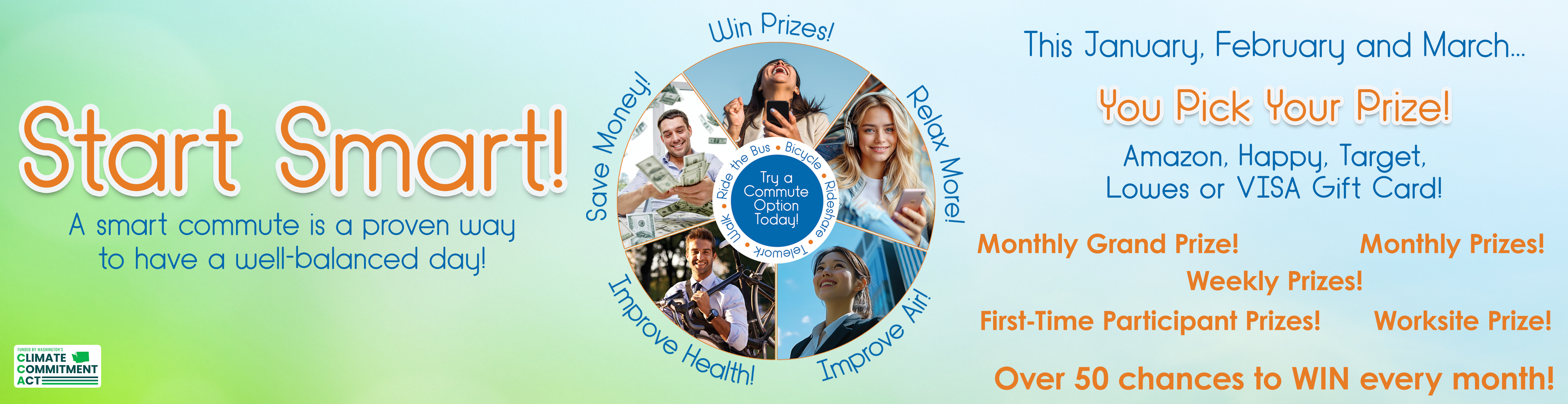 “The CommuteSmartNW Office is supported with funding from Washington’s Climate Commitment Act. The CCA supports Washington’s climate action efforts by putting cap-and-invest dollars to work reducing climate pollution, creating jobs, and improving public health. Information about the CCA is available at Climate.wa.gov.” |