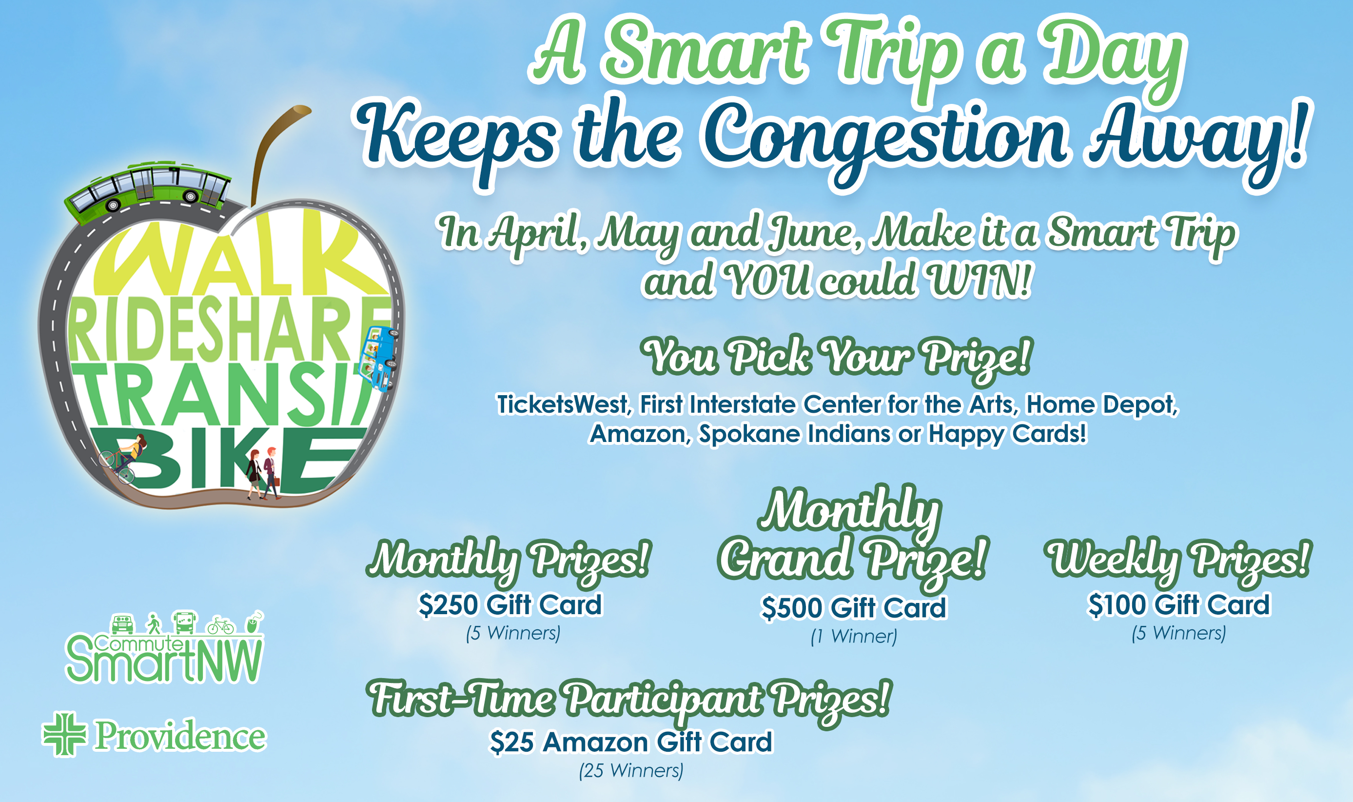 Tired of the daily grind and staring at break lights? It's time to turn your morning commute into a major win. Click here to make it a Smart Trip and WIN! |