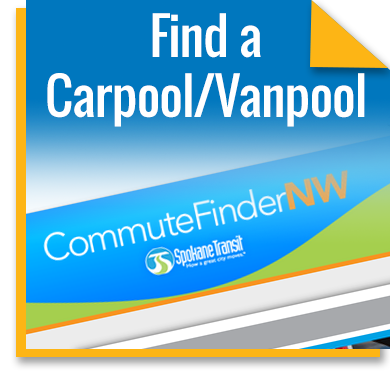 CommuteFinderNW.com is a free on-line commute alternative matching service powered by Spokane Transit in coordination with Commute Smart Northwest. It provides you with immediate results of others who are interested in sharing their commute, and if there’s not a match you can get bus route and park and ride information.